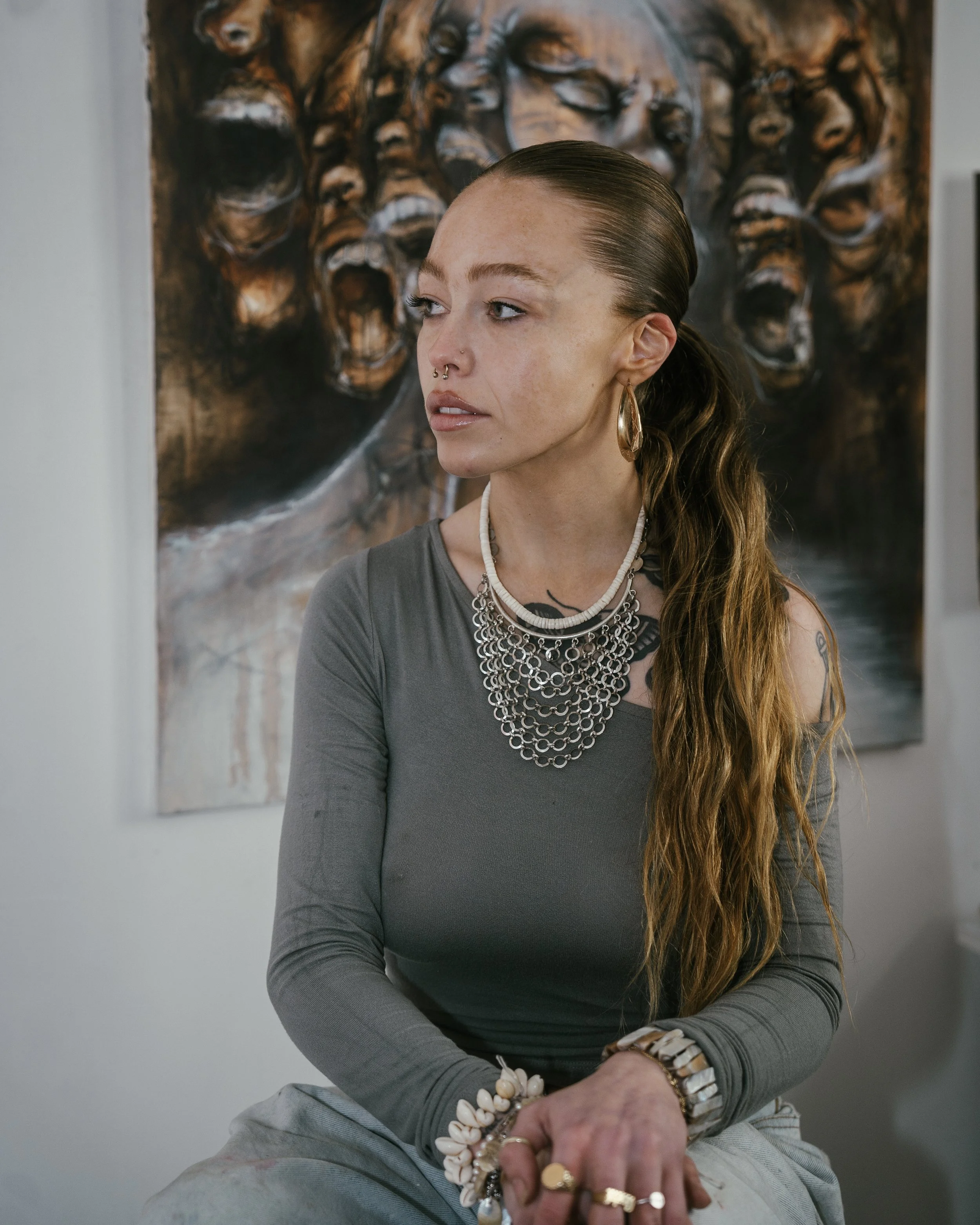 For Gretel, painting is a vital means of release, a way to unpack and express the full spectrum of human emotions experienced in the fast-paced, social-media centric world she finds herself in.